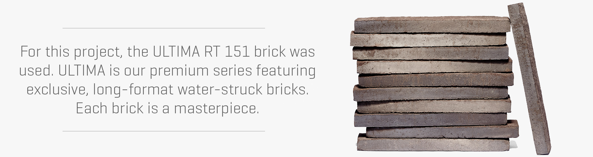 Ultima-formatet er den mest eksklusive serie af mursten, vi nogensinde har produceret. Denne serie byder på unikke vandstrøgne mursten med detaljerede mønstre og spændende farvevariationer. Alle mursten i serien gennemgår en omfattende fremstillingsproces for at opnå deres endelige udtryk. Deres unikke overfladetextur resulterer i en særpræget, dynamisk facade, der er rig på variationer.