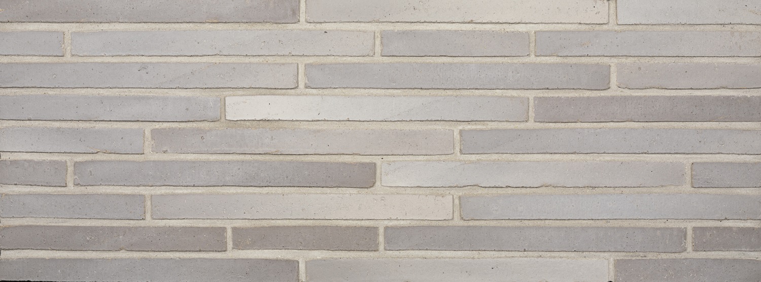 Den valgte sten til facaden er en grå-engoberet mursten i lanformat. Engobe er en fin keramisk væske, der påføres murstenen inden brændingen. I dette tilfælde skaber engoben et let gråt farvespil og dermed elegant og dynamisk variation i de store flader.