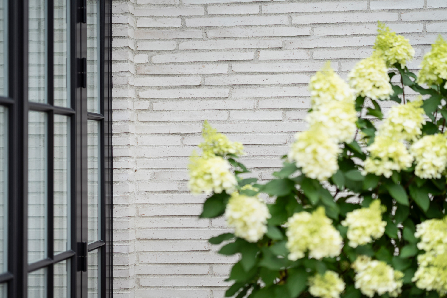 Skifertaget giver et elegant og stilrent udtryk, der harmonerer smukt med teglfacaden. Naturmaterialer er gennemgående anvendt – også til vinduer, døre og undertag – for at sikre, at huset ældes smukt og bærer præg af ægte håndværk.