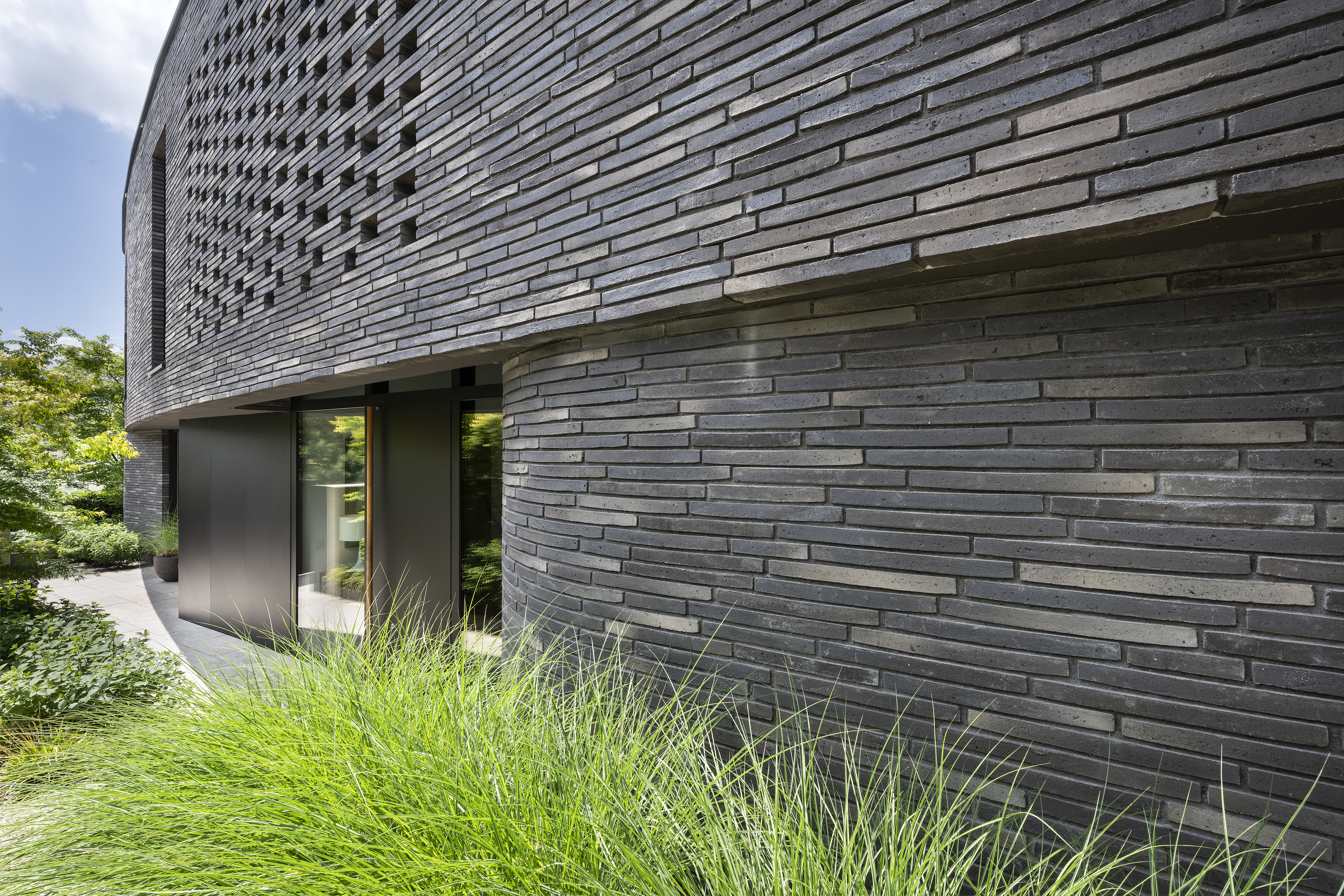 De nødvendige afrundede mursten og præfabrikerede komponenter blev specialfremstillet til netop dette projekt. Derudover skaber de forskudte etagedele vigtige udhæng, som både giver skygge og tilfører bygningen en organisk og dynamisk form.