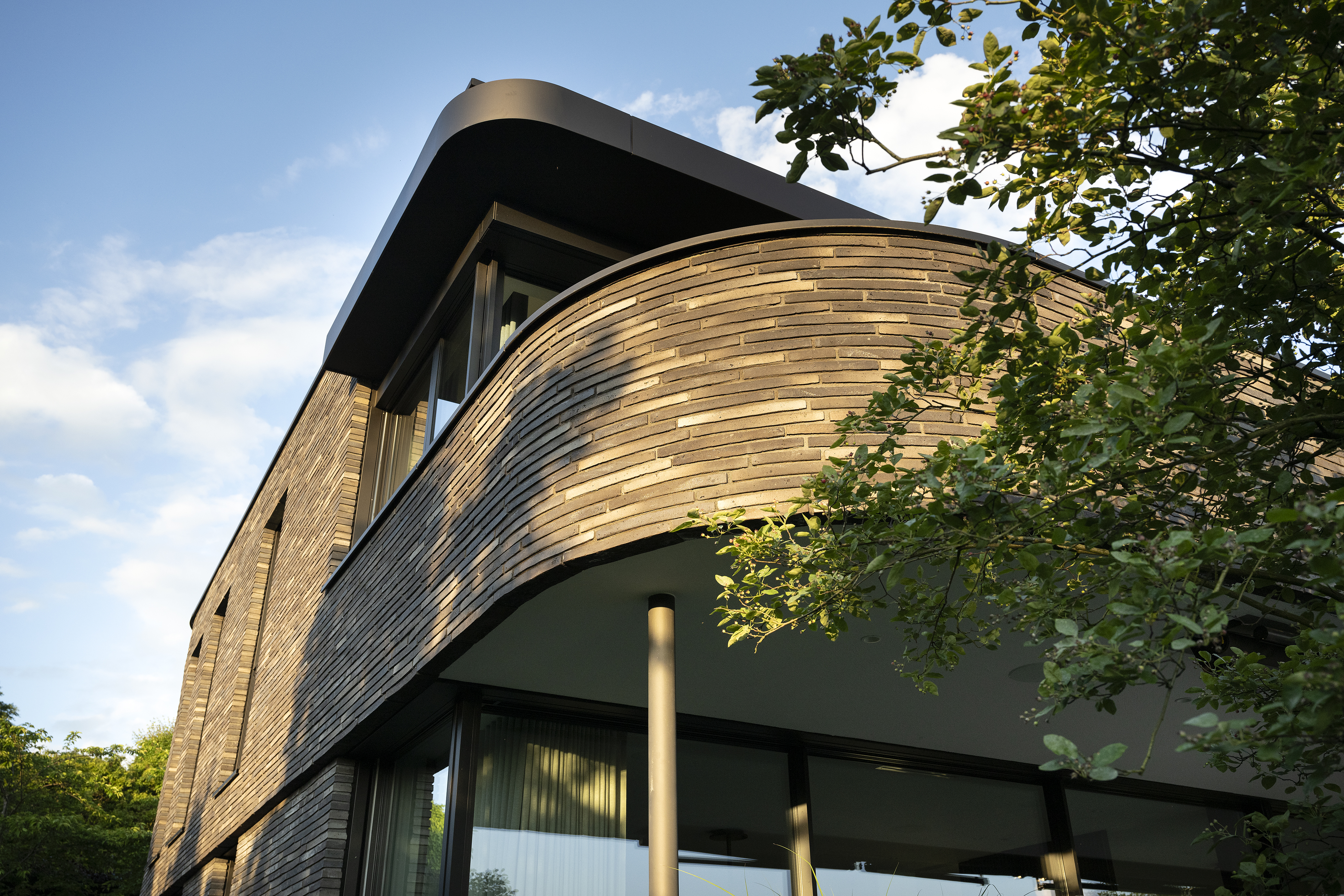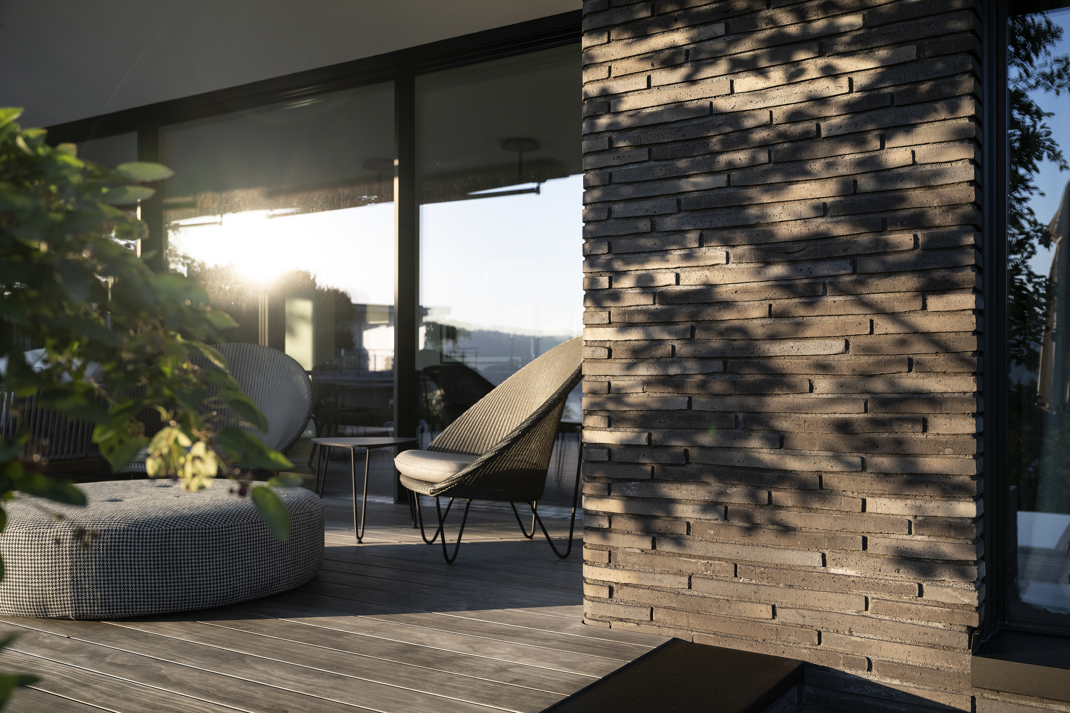 Den moderne villa imponerer både indvendigt og udvendigt med mange perfekt afstemte detaljer. Et centralt element i dette harmoniske ensemble er den levende overfladestruktur af den mørke ULTIMA RT 151-mursten. Denne mursten blev valgt, ikke kun på grund af bygherrens høje krav til eksklusivitet og bæredygtighed, men også fordi den får den store bygningskrop til at fremstå mindre og mere kompakt.