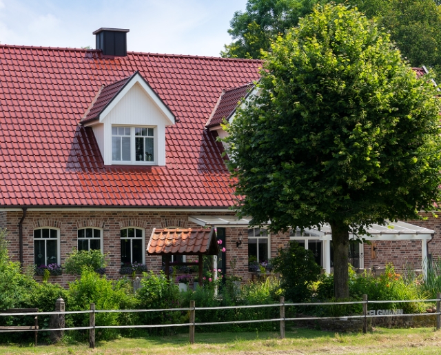 Deze tijdloos moderne vlakke dakpan TIEFA XL TOP® wordt gekenmerkt door zijn zachte welving en harmonisch rustige, duidelijk gestructureerde oppervlakte-effect. Het flexibele middenformaat van de populaire TIEFA XL TOP® is bovendien bijzonder economisch en universeel toepasbaar - en niet alleen voor platte hellende daken.
